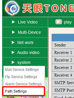 3.Login to your IP CAM, and select "Other" in the left menu -> "Path Settings"